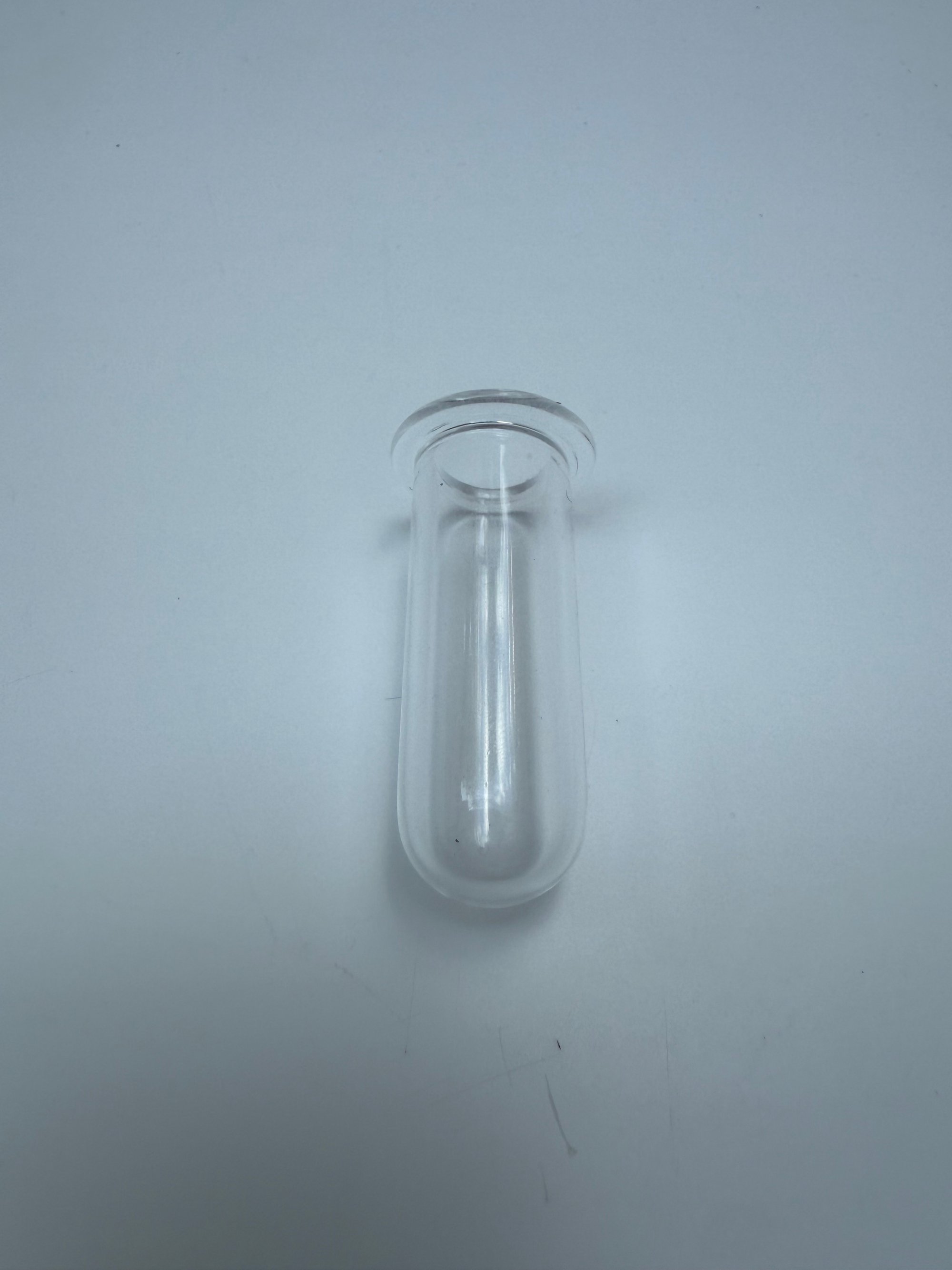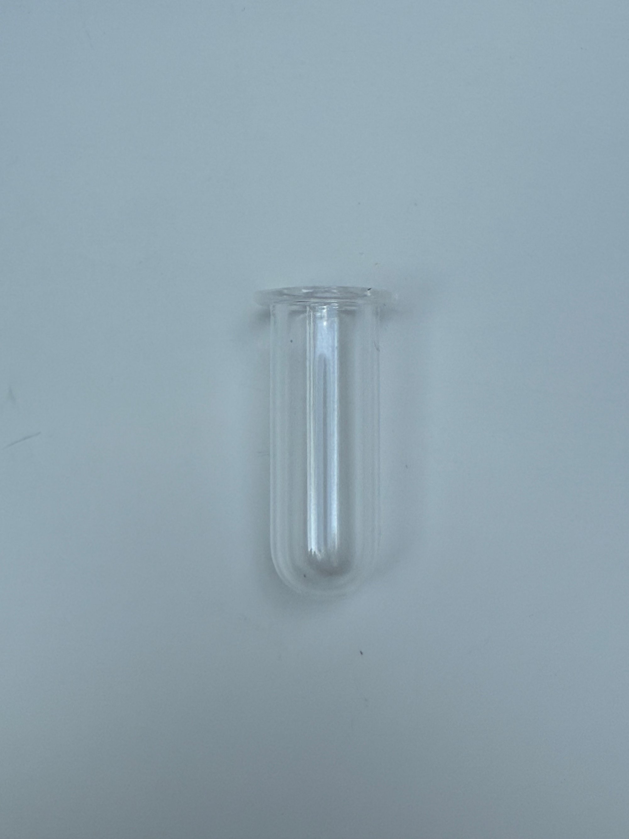 Quartz vial with rounded bottom for use with the Reactor and Sparkplug system. 15mm OD x 11 mm ID